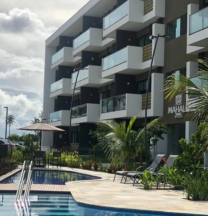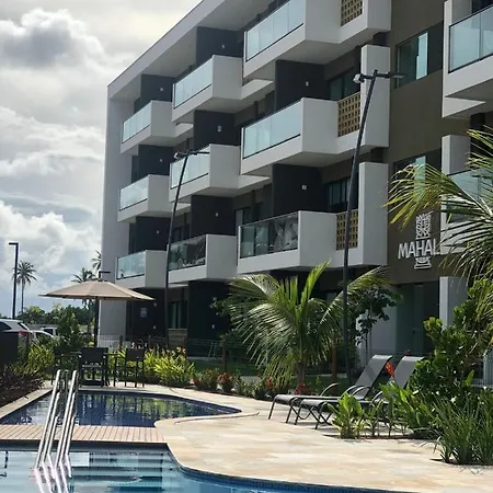 プールの景色を見渡すベッドルーム1室のFlat Muro Alto Pôrto das Galinhasは、Pôrto das GalinhasのPraia do Cupeとても近くです。 また、プールも提供されており、リラックスした滞在をお約束します。